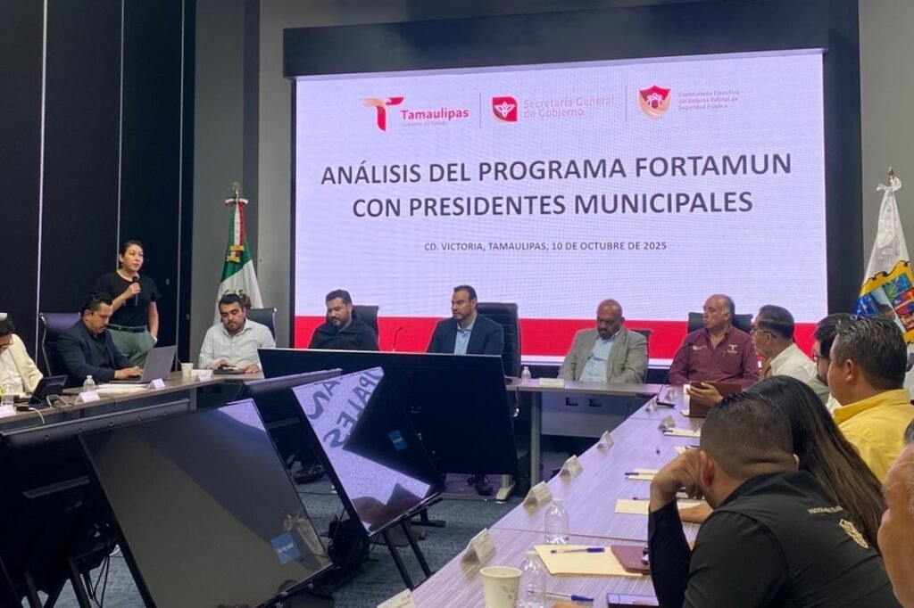 Ciudad Victoria, Tamaulipas.-Como parte del seguimiento a los trabajos para optimizar el uso del Fondo de Aportaciones para el Fortalecimiento de los Municipios y de las Demarcaciones Territoriales del Distrito Federal (FORTAMUN), el Gobierno del Estado de Tamaulipas, por instrucción del mandatario Américo Villarreal Anaya, sostuvo una reunión de trabajo con autoridades municipales de las regiones centro y norte del estado.