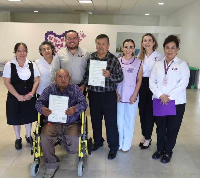 Ciudad Victoria, Tamaulipas.- Como parte de la estrategia impulsada por el gobernador del Estado, Américo Villarreal Anaya, y fortalecida por el compromiso de la presidenta del Sistema DIF Tamaulipas, doctora María Santiago de Villarreal, para asegurar que todas y todos los tamaulipecos cuenten con documentos de identidad que respalden sus derechos, el DIF estatal llevó a cabo la entrega de actas de nacimiento a adultos mayores en la Casa Hogar del Adulto Mayor.